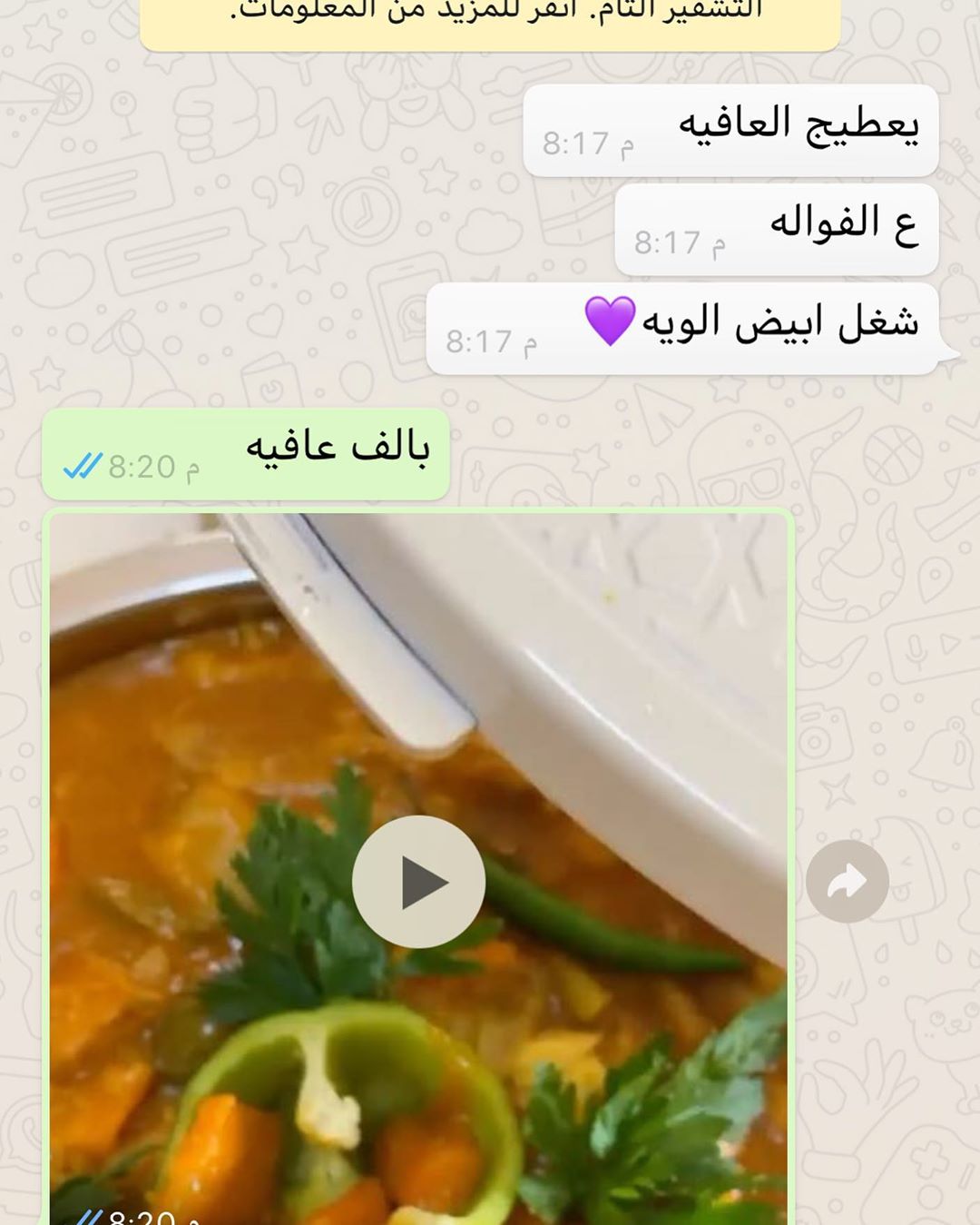 يمكنك التواصل وطلب جميع قائمة الأطعمة المنزلية المعروضة للبيع عبر التطبيق